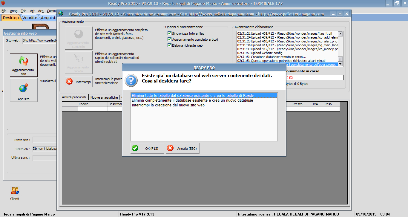 ho fatto il primo aggiornamento dell'e-commerce sul dominio pelletteriapagano.com sfruttando il database Mysql di un altro sito attualmente operativo, ed in fase di aggiornamento dati mi si è aperta una finestra di dialogo di cui allego screenshot. Adesso interrompo l'aggiornamento perchè non posso lasciarlo in sospeso, ma ho bisogno di sapere se continuando c'è il rischio di perdere tutti i dati inerenti all'altro sito, e se in questo caso mi conviene acquistare un altro database.