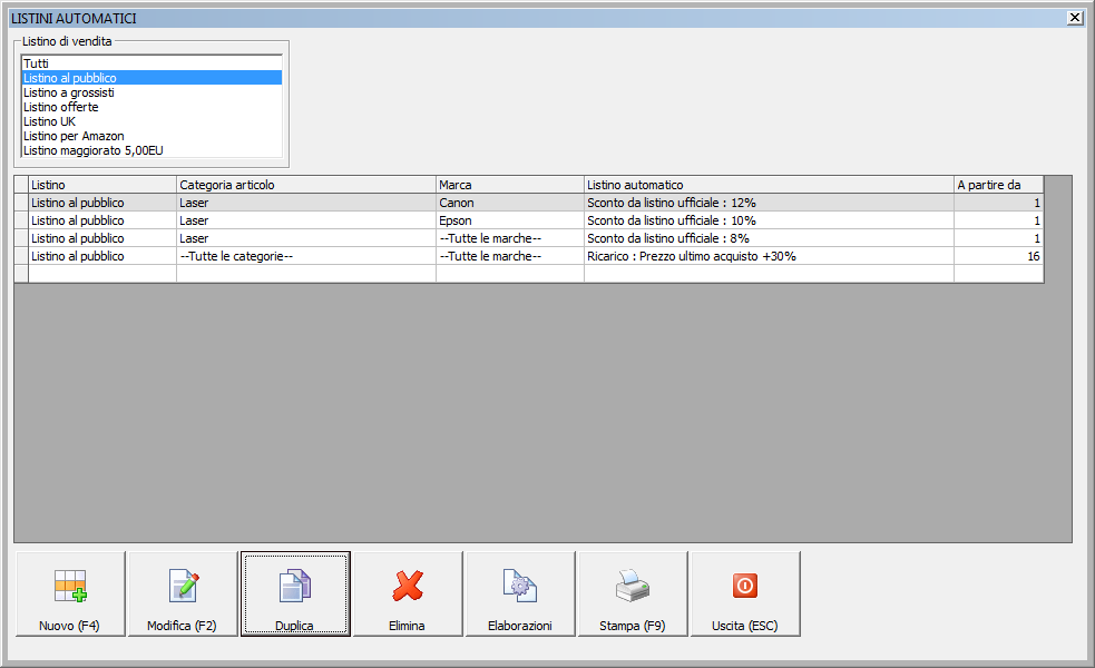 Buongiorno, ho notato che i listini automatici vengono mostrati in ordine alfabetico e non di creazione... ma in che ordine vengono applicati? Vi spiego. Ho la necessità di creare dei listini automatici per una categoria, ma solo per alcune marche perché due marche hanno ciascuna un listino calcolato diversamente. Per non dover fare (siccome riguarda 2 listini) decine di regole diverse pensavo di applicare una regola univoca a tutta la categoria (es telefonia) e creare ulteriori due regole per i due marchi specifici. Ma in quali casi una regola "prevarica" l'altra? come mai non avete previsto la possibilità di lavorare "per esclusione" o quantomeno introdurre una selezione multipla di categorie e brand?