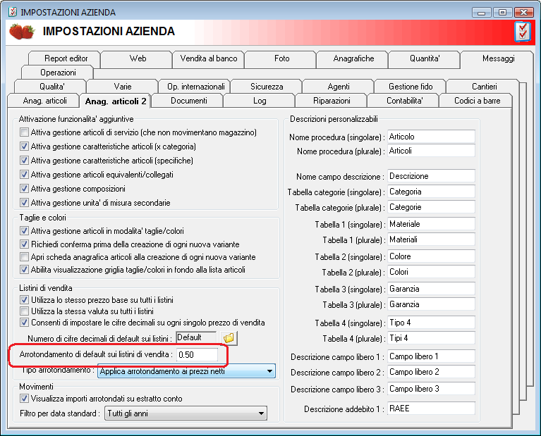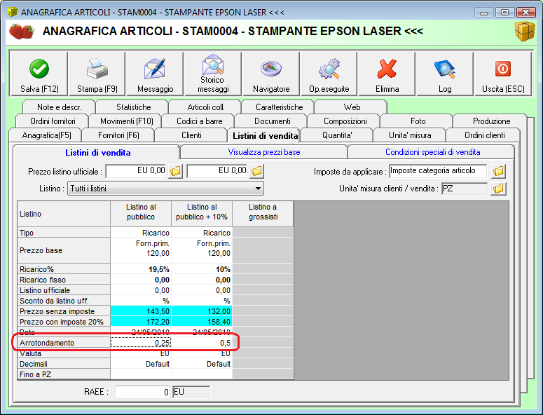 Salve, volevo sapere come si fà in una determinata categoria dove io assegno un ricarico del 20% al prezzo iva esclusa e successivamente come prezzo viene fuori € 5,38 iva compresa. A questo punto decidere che i prezzi iva compresa nella stessa categoria devono venire fuori con l'arrotondamento 0,30 cioè € 5,30 e non € 5,38 Iva compresa.Oppure decidere in eccesso non € 5,38 ma bensì un arrotondamento a € 5,50; cioè tutti i prodotti in quella determinata categoria devono avere un arrotondamento di € 0,50. Attendo vostre. saluti Massimo
