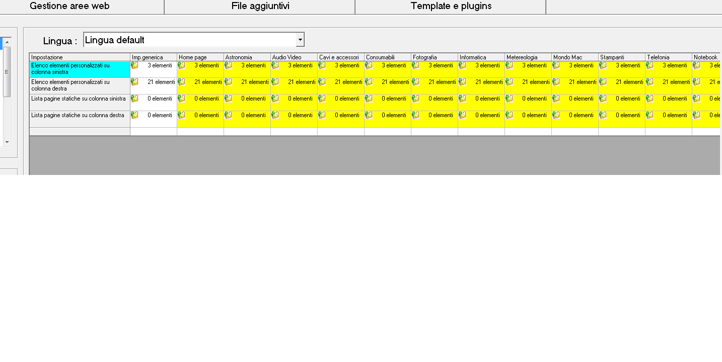 Potresti allegare anche uno screenshot di come e' configurata la sezione ELEMENTI IN COLONNA su WEB / TEMPLATE E CONTENUTI ?