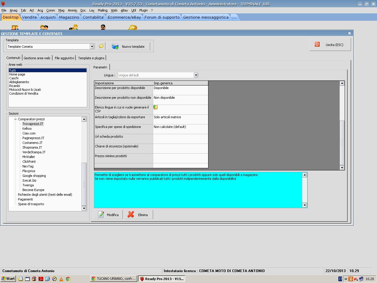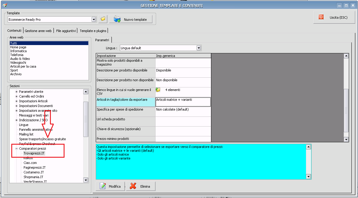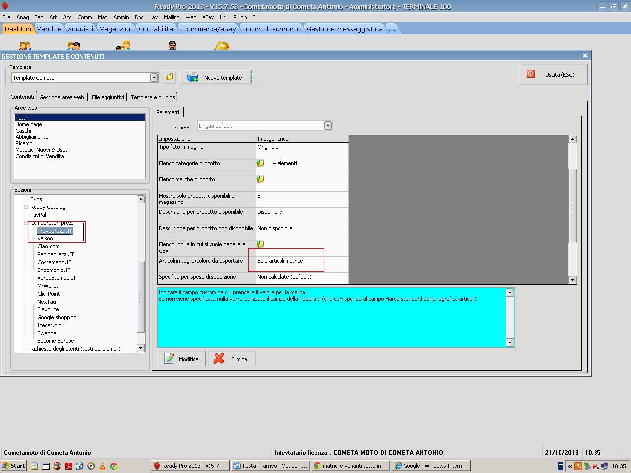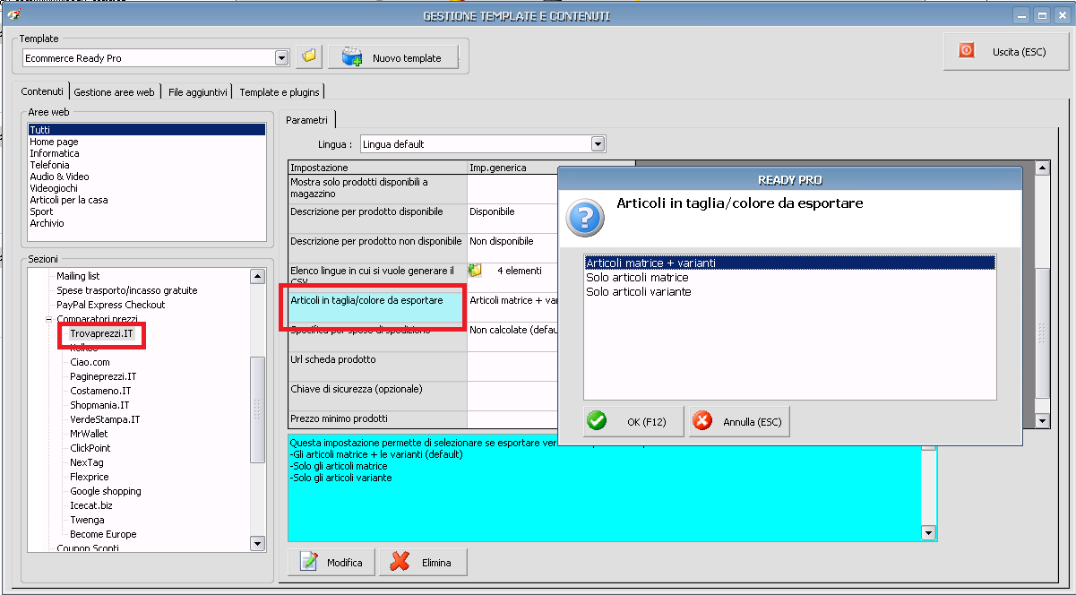 va bene, ho modificato come da Tuo screenshot. mi è sembrato strano però modificare con " articoli matrici+varianti " per esportare sul comparatore solo le matrici. Mi attengo in ogni modo alla procedura indicata sopra. Grazie Antonio