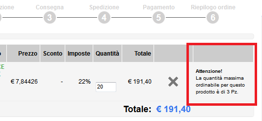 ATTENZIONE ! La Quantità massima attualmente ordinabile per questo prodotto è di....