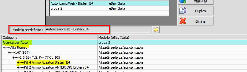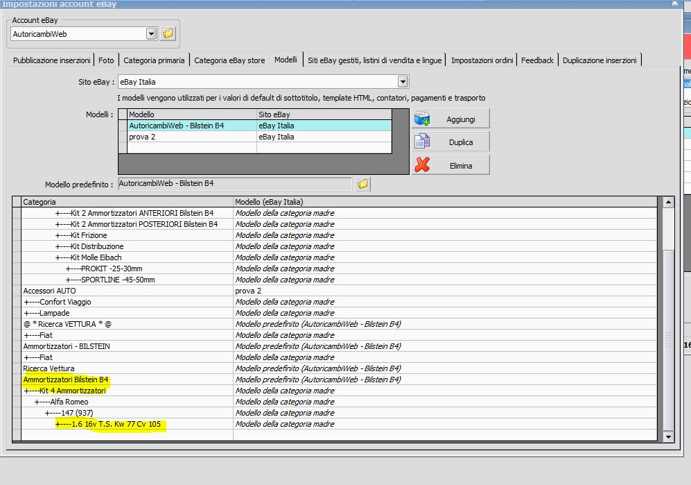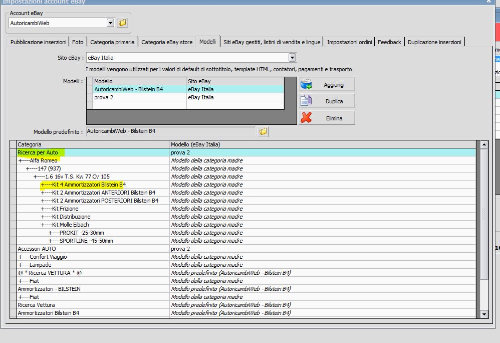Giustamente nelle impostazioni dell'account nella categoria Ricerca per Auto non vi dovrebbe esser agganciato nessun modello, in modo da evitare che quando andiamo a sincronizzare le inserzioni il sistema prende un modello generico e di conseguenza errato.