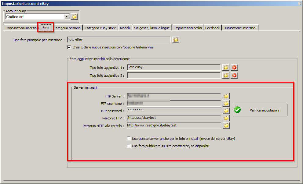 Correttamente l'articolo ha una foto per l'e-commerce ed una foto principale ebay ma quando andiamo a caricare la scheda prodotto resta sempre con immagine vuota.
