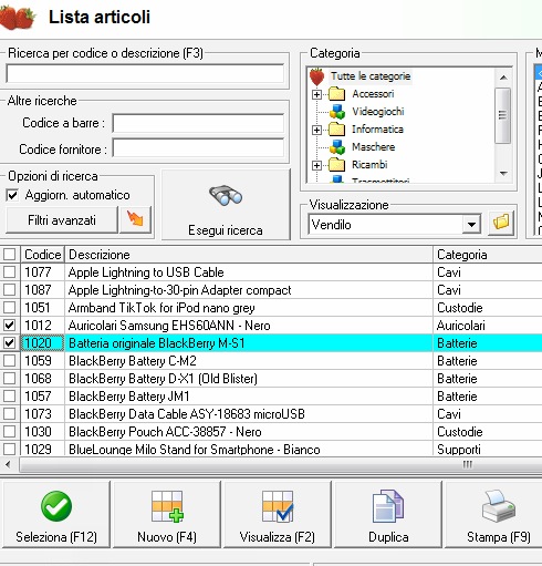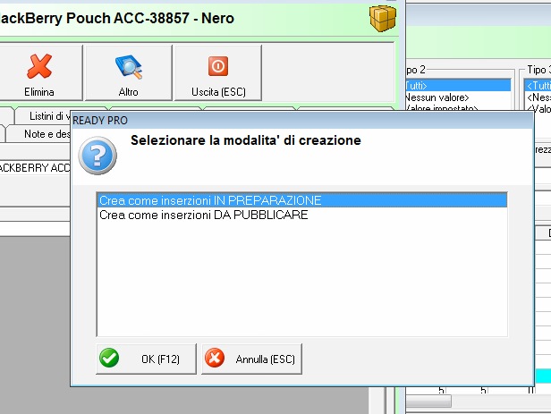Quando vorrai creare le nuove inserzioni, dovrai accedere al menù EBAY > GESTIONE INSERZIONI, cliccare sul pulsante "Nuovo" e ricercare dalla lista gli articoli mancanti utilizzando quei filtri mostrati sopra. A questo punto potrai poi impostare le condizioni e i vari parametri che ti servono