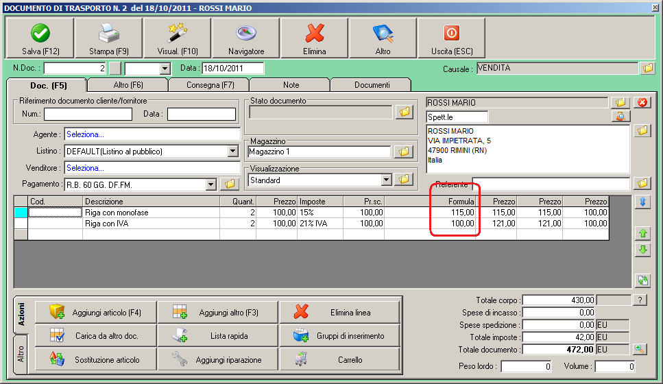 Il mio problema è che per le fatture ESENTE IVA o IVATE funziona correttamente, con indicazione delle imposte in basso e solo imponibile nel corpo...