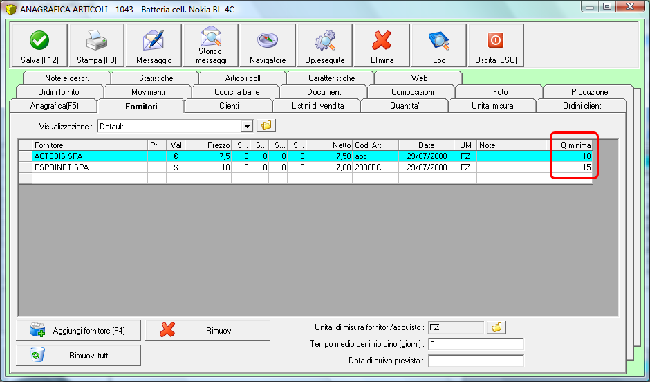 Nel senso che, fino a quando parliamo di articoli Normali (e per normali intendo articoli più o meno voluminosi) ok,... Ma se si tratta di minuteria (come nel mio genere).. parecchi articoli sono acquistabili in scatole da 200/500/1000....5.000... etc... e per effettuare gli ordini a fornitore inserisco la quantità minima di acquisto.. che spesso non coincide con la quantità da ordinare...
