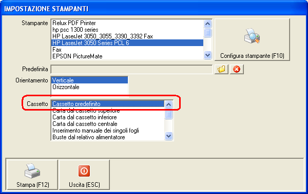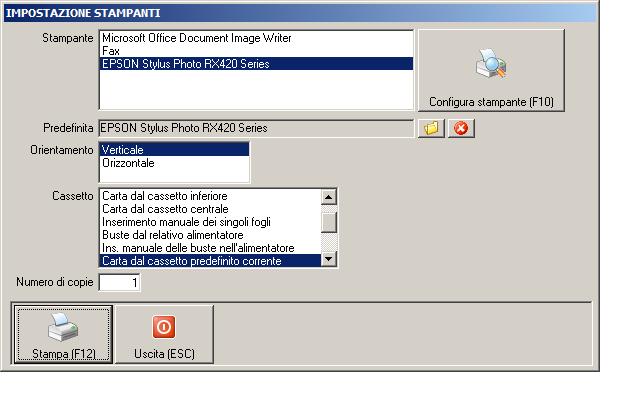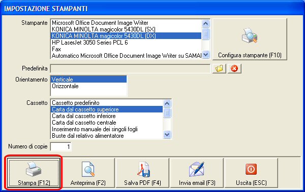 Fammi capire meglio. Se stampi ad esempio una fattura, una volta selezionato il modello di stampa preferito, ti si apre la finestra IMPOSTAZIONE STAMPANTE.