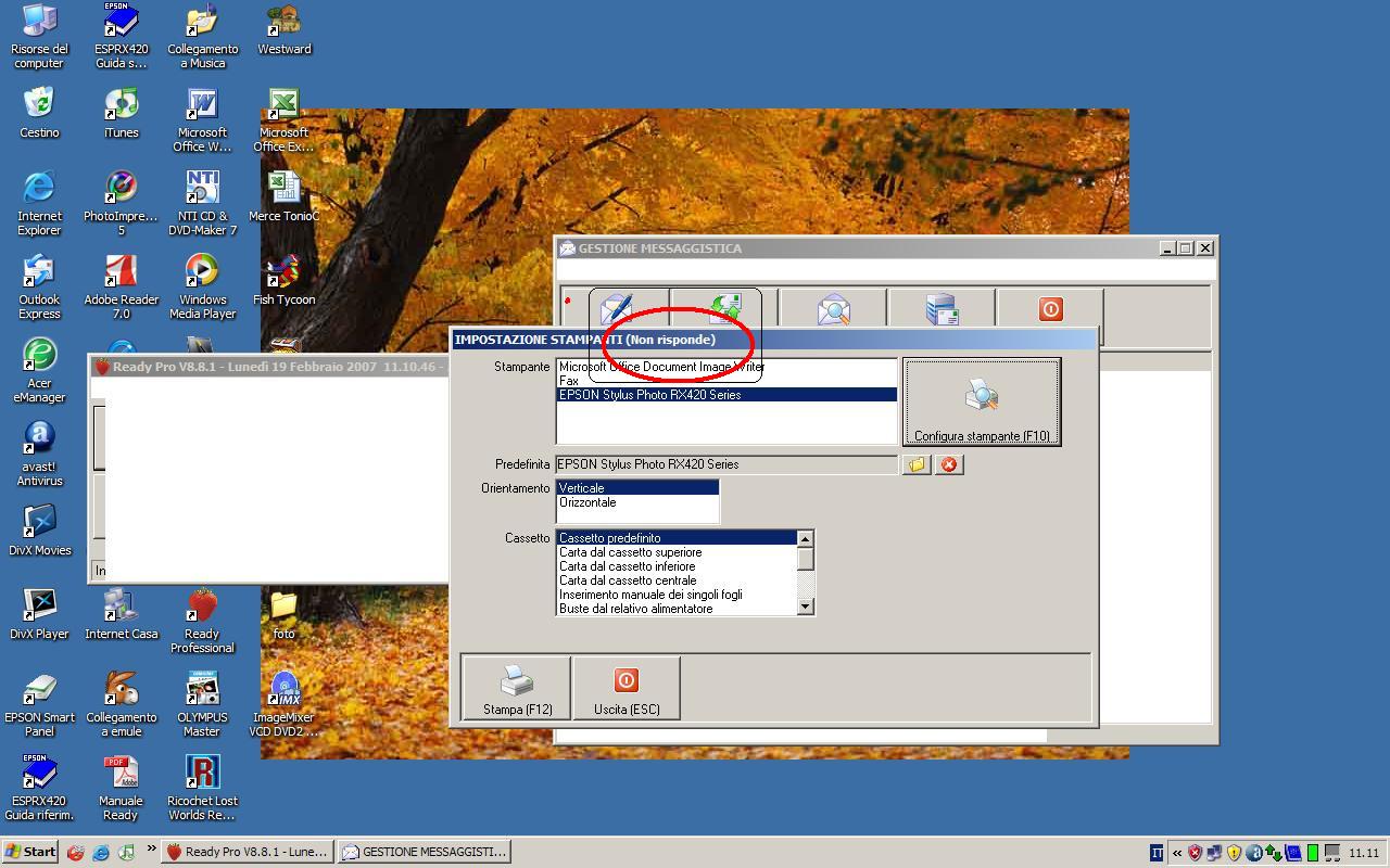 Mi dispiace ma il problema e' evidentemente esterno a Ready Pro. Gli unici suggerimenti che possiamo darle a questo punto sono di tipo radicale (ad esempio fare reinstallare da zero il sistema operativo)