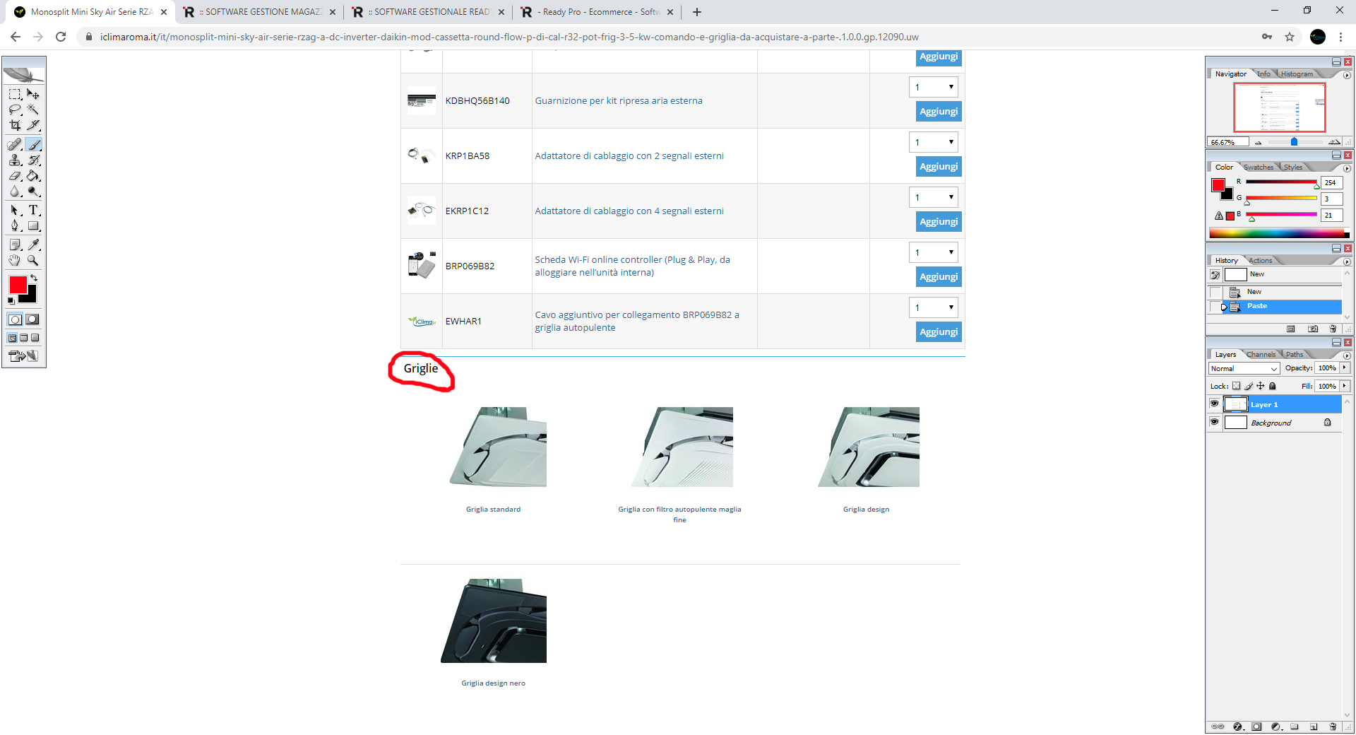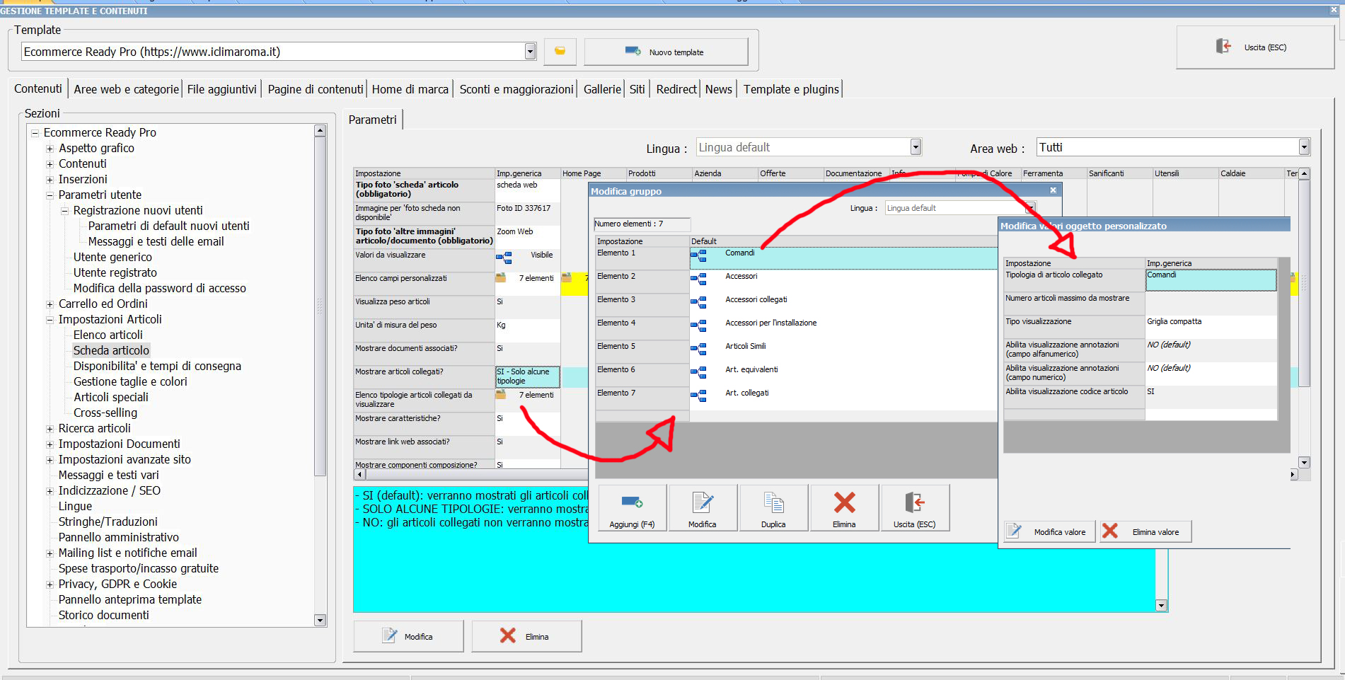 e impostati come screen shot allegati, però sul sito ne visualizzo solo 2 ovvero Accessori e Griglie i comandi non si vedono.