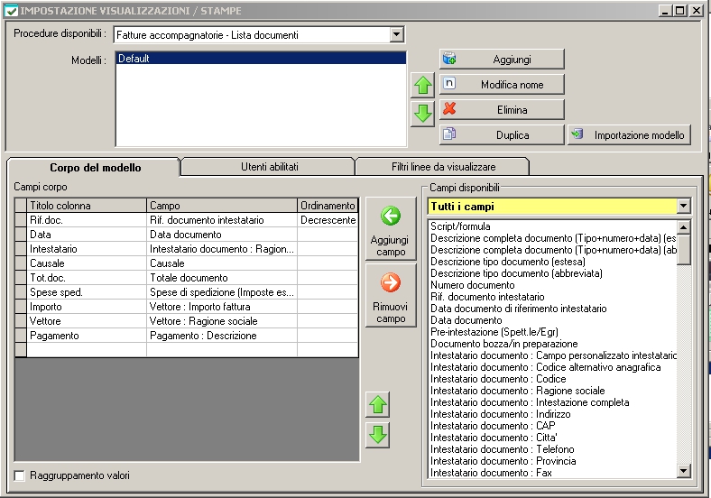 Sta sera di colpo senza avere toccato nulla... l'ordinamento non mi funzionava piu. Mi spiego: Aprendo FATTURE ACCOMPAGNATORIE ed avendo impostato da UTIL>IMPOSTAZIONI VISUALIZZAZIONE>FATTURE ACCOMPAGNATORIE-Lista Documenti Il campo Rif.Doc con ordinamento Decrescente. Prima Immagine
