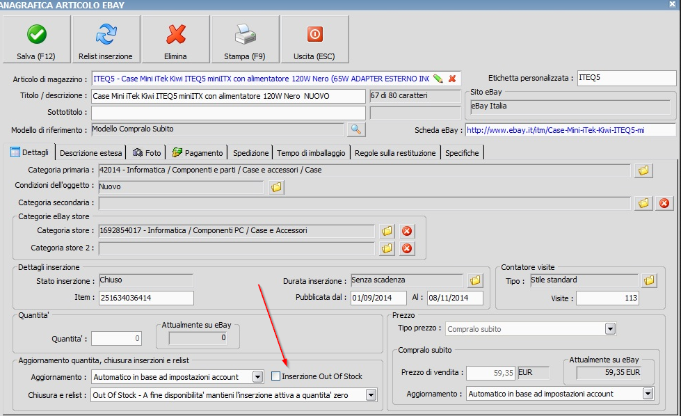 1- si potrebbe dare la possibilità di creare inserzioni nuove con la spunta indicata dalla freccia gia selezionata cosi che è il cliente a decidere quali far lasciare aperte o meno