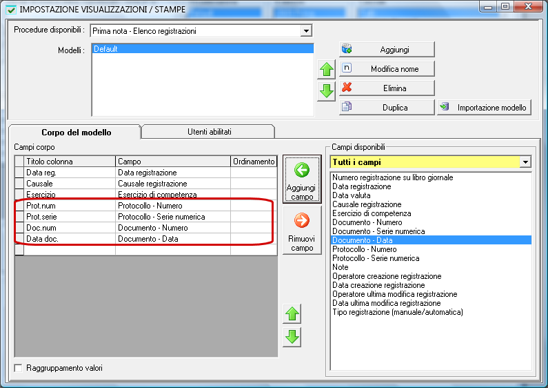 Puoi procedere in questo modo. Prima di tutto puoi modificare la visualizzazione inserendo questi campi come da foto allegata(image1): - Protocollo - Numero - Protocollo - Serie Numerica - Documento - Numero - Documento - Data