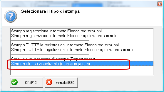 A questo punto puoi premere il pulsante "stampa" e selezionare "STAMPA ELENCO VISUALIZZATO (elenco in griglia).