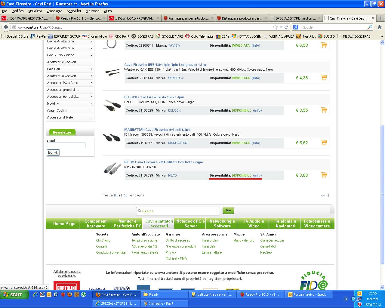 millstore.it - Chiede di poter "registrare" sul carrello i tempi di consegna previsti. Cioe' sul carrello memorizzare i tempi di consegna, cosi' che si possano consultare anche successivamente in caso di contestazioni da parte del cliente o per verifica (per capire che tempi ha visto il cliente sul sito) Questa e' la richiesta tra le 3 piu' fattibile e sui cui stiamo lavorando da un po' di tempo (la richiesta non e' nuova e gia' aperta qui: http://www.readypro.it/inserire-campo-libero-3.10.0.154056.fo.aspx ) Purtroppo anche qui la complessita' tecnica non e' da poco, ma tra le varie cose ci sembra la piu' utile per tutti gli utenti