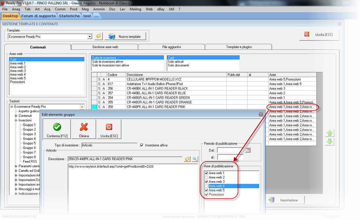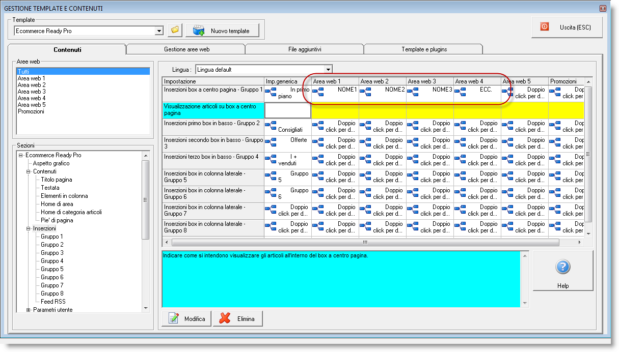 Salve, fino a quell'operazione ci sono arrivato anche da solo, ma forse la mia domanda, come giustamente hai puntualizzato è stata poco chiara. Provo a riformularla : C'è la possibilità di avere enne (n) gruppi d'inserzione in base alle varie aree web che si ha la possibilità di inserire del sito ? Il problema NS è quello di poter avere un'area offerta dedicata e inerente alla tipologia di prodotti che ogni area web racchiude. Quindi avendone oltre il VS fatidico 8 non troviamo il modo di inserirne altri. Spero di essermi spiegato e che mi sappiate dare una risposta.