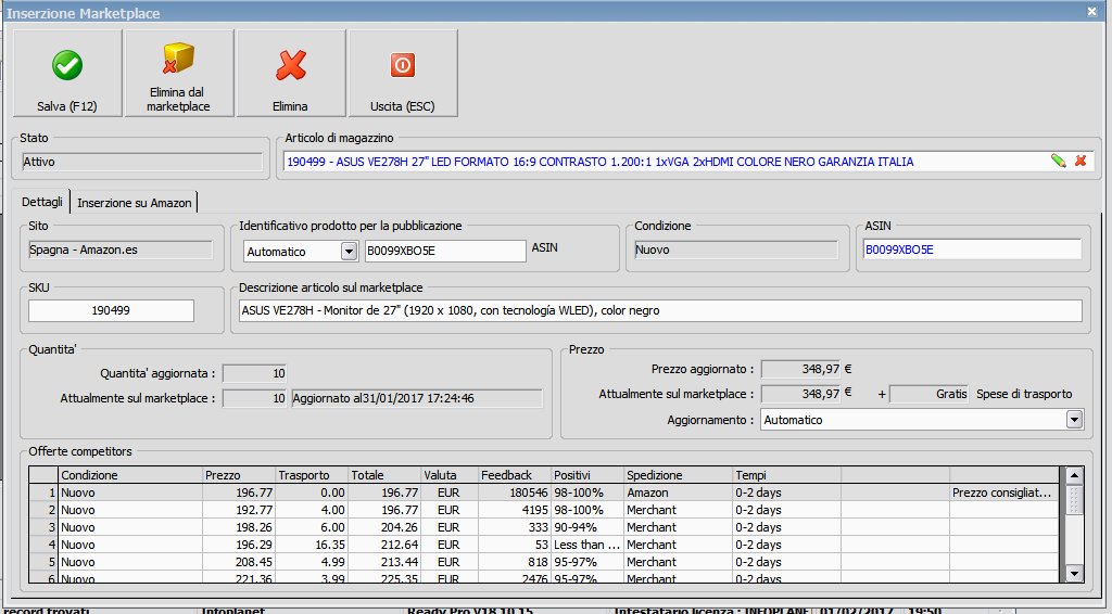 Si, ma l'inserzione Amazon Spagna e' corretta. Quella di cui dovremmo vedere lo screenshot e' l'inserzione Amazon UK (vista su Ready Pro, in modo che si possa vedere quali sono i prezzi considerati e calcolati da Ready Pro)