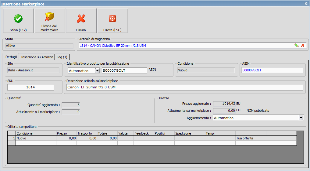 Citazione: si quello ho controllato.....1.16 li sembra tutto ok Prova ad allegare uno screenshot dell'inserzione presa da MARKETPLACE / AMAZON - GESTIONE INSERZIONI, come nel mio esempio