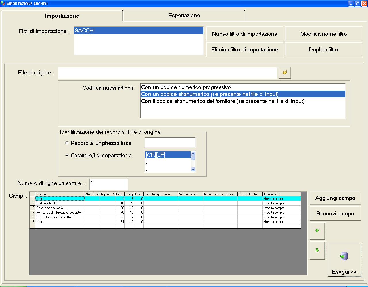 vi potrei allegare il file .txt dell'importazione dati ma non sò come passarvi il mio filtro di importazione (anche se lo si vede nello screenshot precedente)