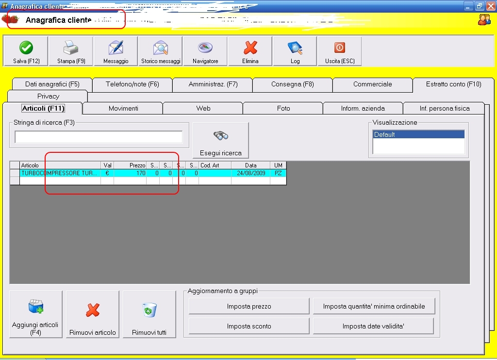 In questo modo tutte le condizioni automaticamente inserite, dopo le vendite, se ne vanno a farsi benedire?! Ad esempio: se io ho venduto ad un cliente un articolo a € 170,00 invece che a € 190,00 Ready-Pro memorizza per quel cliente € 170,00. Questo è l'unico sistema per gestire i netti clienti. Se il cliente mi ordina lo stesso pezzo dall'E-Commerce, per prima cosa non vede il suo prezzo di € 170,00, ma, € 190,00 per cui o non lo compra o telefona o lo compra a € 190,00. Diventa un caos, visto che la maggior parte di quelli che utilizzano il Ready-Pro fanno affidamento a questo tipo di condizioni automatiche. Non hai modo di agganciare tali condizioni all'E-Commerce?