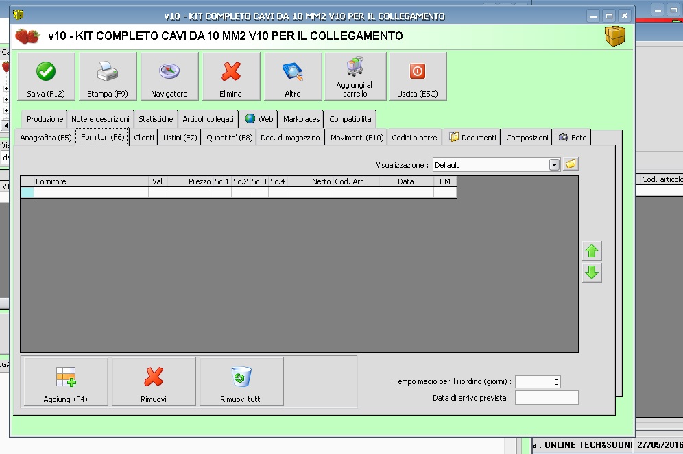 Premetto che non come possiate gestire le disponibilita' di magazzino in un modo simile, perche' non avrete mai un calcolo corretto ne' delle giacenze ne' tantomeno delle disponibilita'. Detto questo, per quanto riguarda l'articolo V10 mostrato sopra, questo non arriva da Prestashop, ma da quello che vedo e' stato creato manualmente su Ready Pro. Per evitare che l'importazione da catalogo crei articoli doppi e' quindi necessario che indichiate nella sezione FORNITORI il fornitore (fornitore fittizio che e' associato al vostro catalogo Prestashop) ed inserendo il codice articolo corretto, cosi' che Ready Pro possa aggiornare quell'anagrafica e non crearne una nuova. E questo ovviamente vale per tutti gli altri articoli preesistenti, devono avere collegamento con il fornitore impostato sul catalogo, con il corretto codice articolo fornitore, altrimenti non verranno mai aggiornati