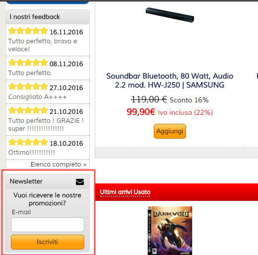 Salve, stiamo apportando delle modifiche al sito. Abbiamo cominciato eliminando gli elementi dalle colonne, portandoli a piè pagina. Per quanto riguarda la Newsletter, però, stiamo riscontrando delle problematiche. La prima è che, nonostante sia stata impostata la visibilità su "No", il box in colonna continua ad apparire (primo screen). La seconda, invece, è legata al box a piè pagina. In pratica, non ha alcun tipo di configurazione quindi, dopo aver inserito la mail, porta semplicemente ad una pagina bianca, che non da né conferma, né un messaggio di ringraziamento, come invece accade per il box in colonna. E' possibile risolvere?!