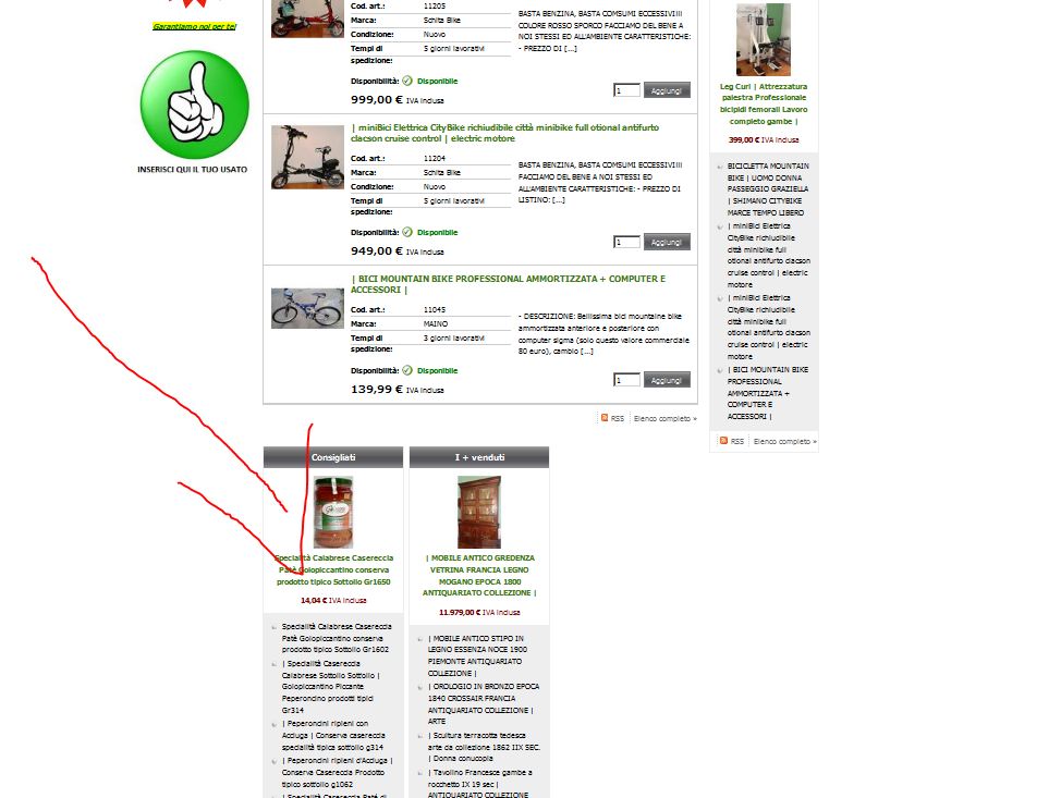 Inoltre, sul sito mi visualizza sempre in basso dei box i + venduti e in primo piano, qualsiasi sia la home di area, come devo fare per rimuoverli? Ho inserito una serie di foto per spiegarmi meglio. Grazie. Enzo