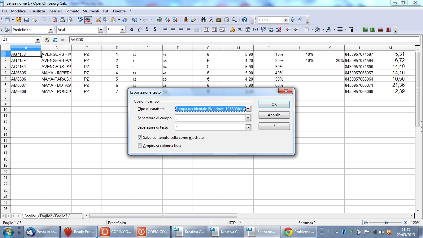 Purtroppo mi dice vedi screenshot Se avete suggerimenti su come impostare l'import da file ods a csv
