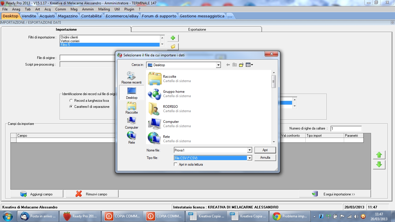 perchè se nel file che importo dal mio copia commissioni exel97 oppure .csv