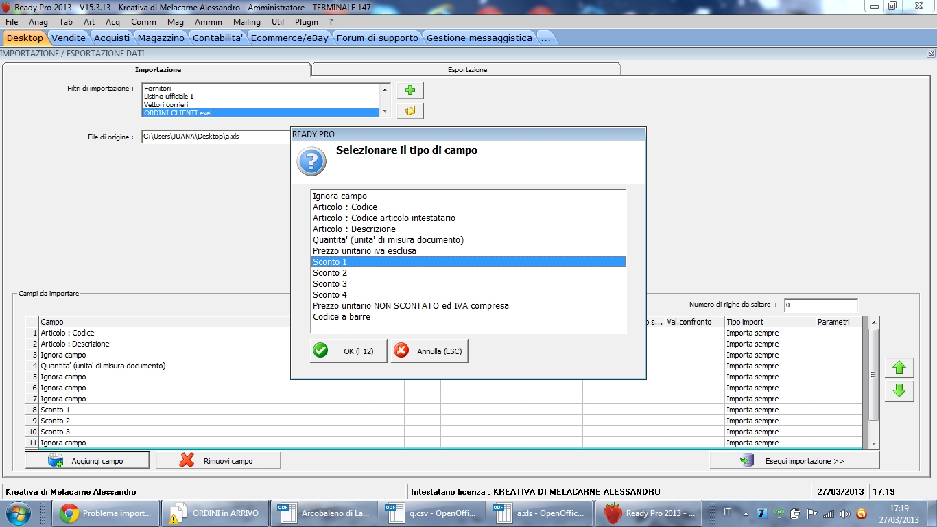 In pratica : importando il file .csv o exel97 da open office a UTIL in anteprima non crea problemi importando il file .csv o exel97 come da manuale redypro nell'ordine cliente non riporta gli sconti perchè? Vedi gli screenshot precedenti