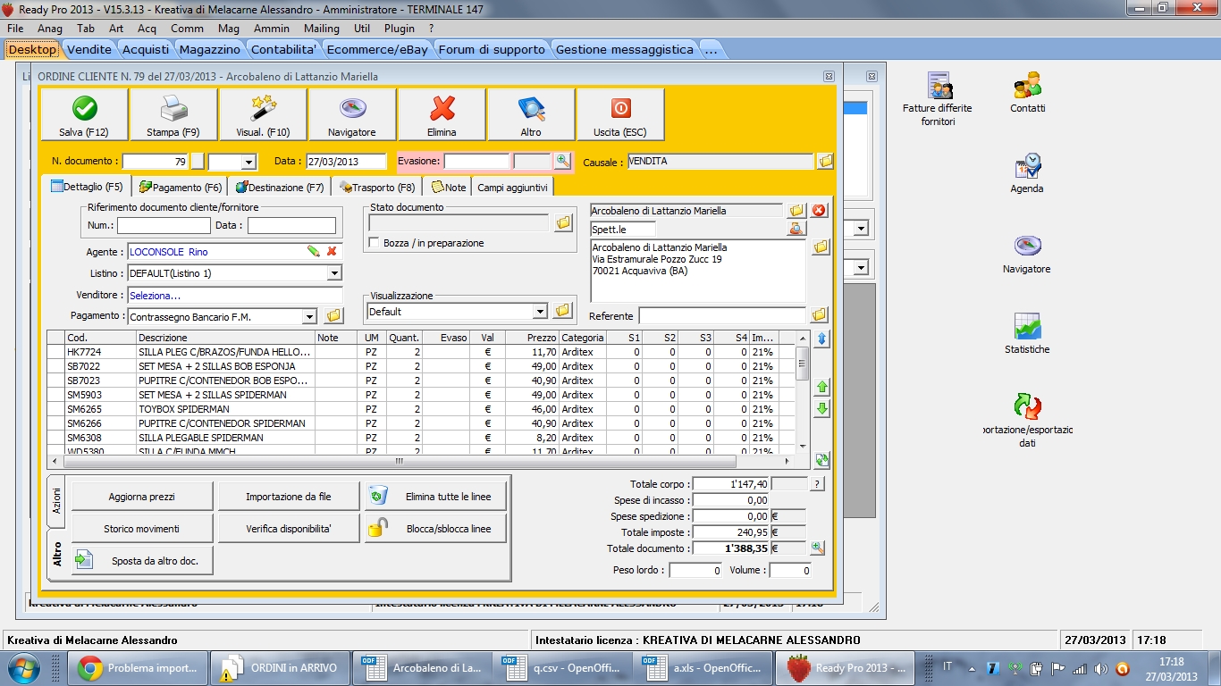 Dopo vado a creare un NUOVO ordine cliente e provo ad importare come da manuale il file e magicamente mi importa tutto anche i prezzi sbagliati