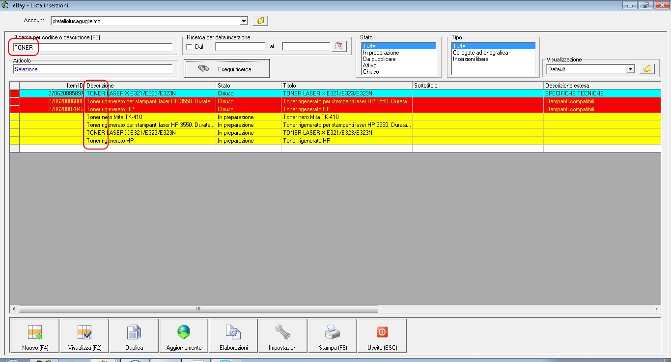 Citazione: possiamo quanto meno eliminarle da e-bay così da ricrearle col giusto modello? Direi proprio di si. La rimozione delle inserzioni da eBay e' chiaramente sempre possibile. E chiaramente anche la successiva rigenerazione