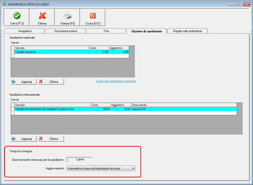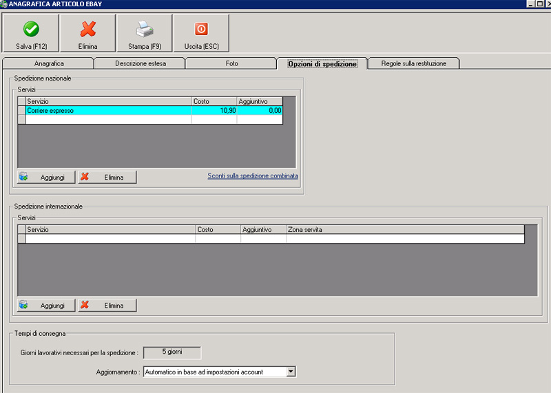 Mi sono accorto di una cosa. Creando la lista delle inserzioni da pubblicare nella vista ho aggiunto i "Giorni lavorativi necessari per la spedizione" e sono tutti a ZERO.