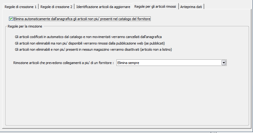 Tutto parte dalla condizione sul catalogo fornitore per cui tutti gli articoli NON più disponibili e associati a più di un fornitore vengono eliminati (vedi allegato)
