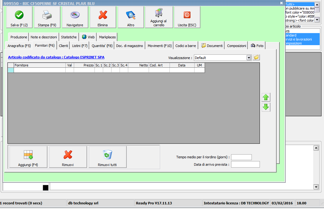 All'interno dell'anagrafica dell'oggetto , nel tab fornitori , viene eliminato il fornitore primario , quindi scollegato. resta solo la codifica da catalogo. (vedi allegato)