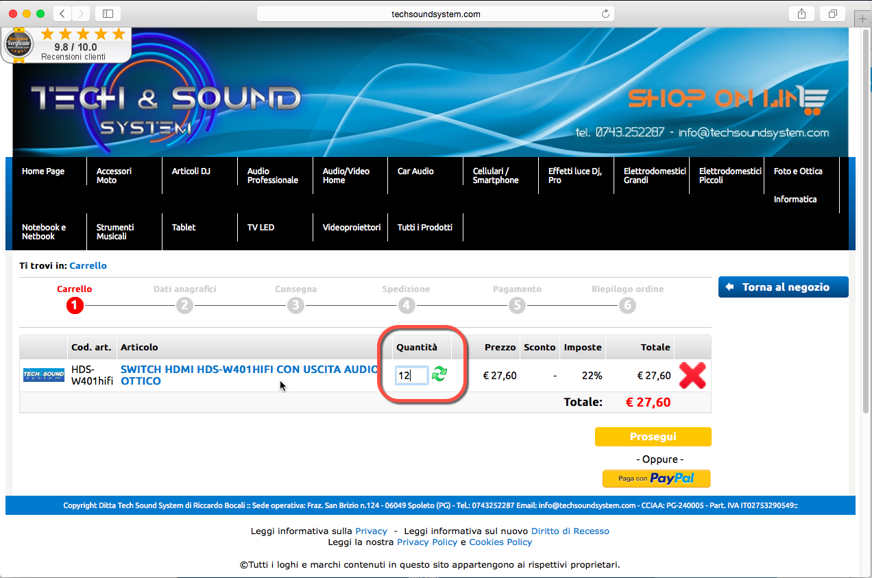 Così, un utente che deve variare la quantità deve forzatamente eliminare l'intera riga, tornare allo sho pe inserire una nuova quantità...Addio ordine, il cliente fugge..