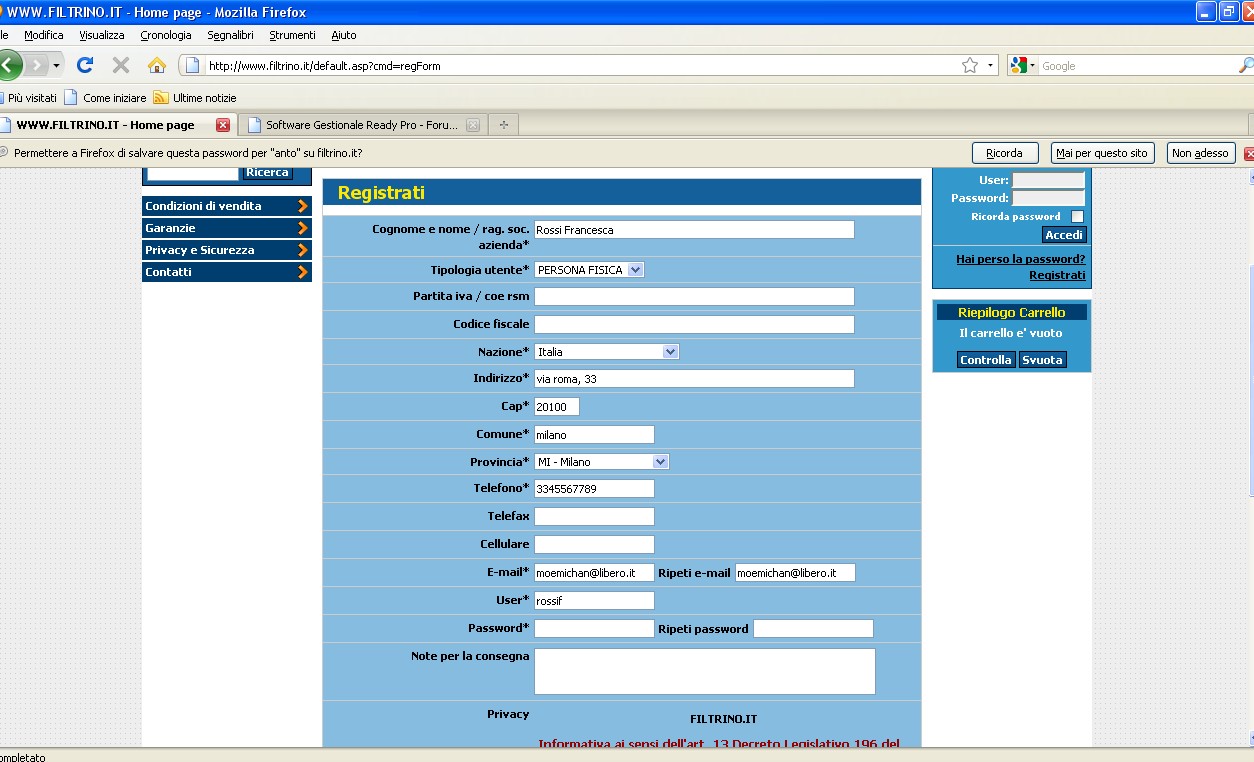Problema tecnico nelle opzioni del FORM REGISTRAZIONE UTENTE