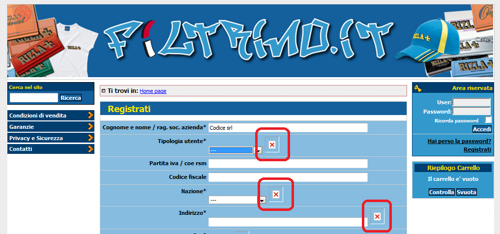 Un'altro problema che si è verificato in fase di registrazione è stato il fatto che, non inserendo i campi obbligatori mi appare la finestra di errore che dice di ricontrollare i CAMPI SEGNATI IN ROSSO, ma non ci sono campi rossi! Probabilmente devo andare ad impostare questa opzione in caso di errori durante la registrazione.. giusto? Dove?