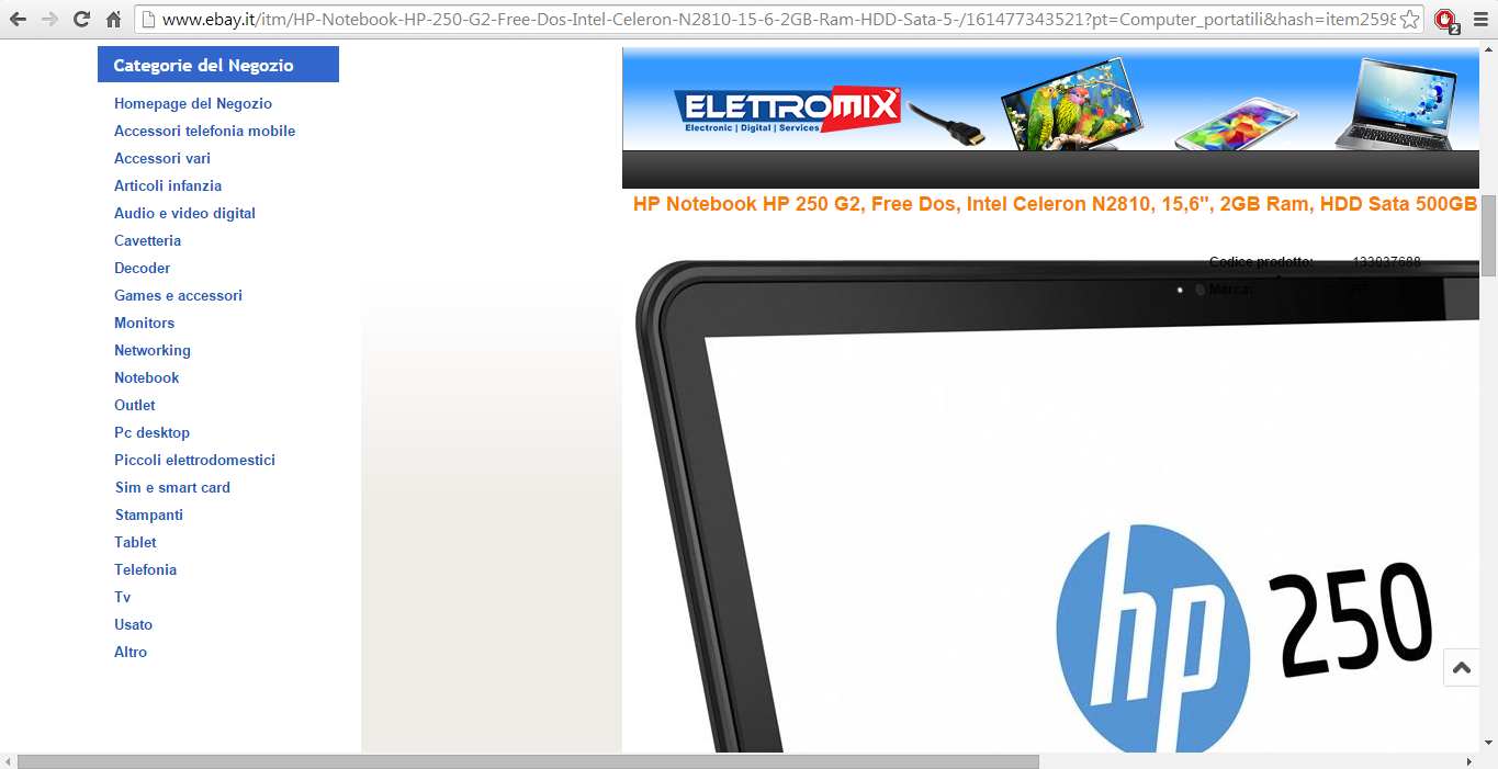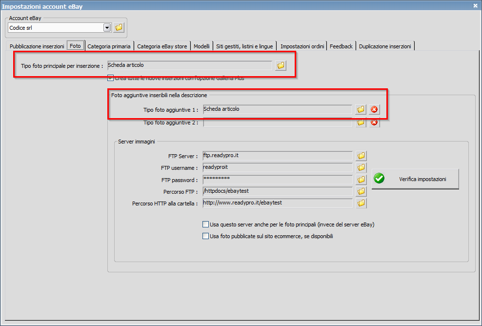 BuonGiorno, avrei un problema relativo alle inserzioni eBay, nello specifico, per quanto riguarda il caricamento del template HTML. In pratica, tendiamo ad inserire foto di buona risoluzione nelle inserzioni (che aggiungiamo con l'opzione "Foto Generica Articolo" da Ready) per far sì che i clienti possano zoomare senza problemi. Così, la foto presente nella testata è ok. Il problema sorge nel corpo dell'inserzione, dove viene posizionata la medesima foto, rendendo illeggibili le info riguardanti il prodotto (allego screenshot). M'interesserebbe sapere, se possibile, come fare per far apparire la foto presente nell'anagrafica foto sotto "Foto Scheda Web" nelle info, giacché viene ridimensionata ad una qualità più che accettabile. Insomma, vi è un modo per porre rimedio a questo inconveniente!? Grazie anticipatamente.