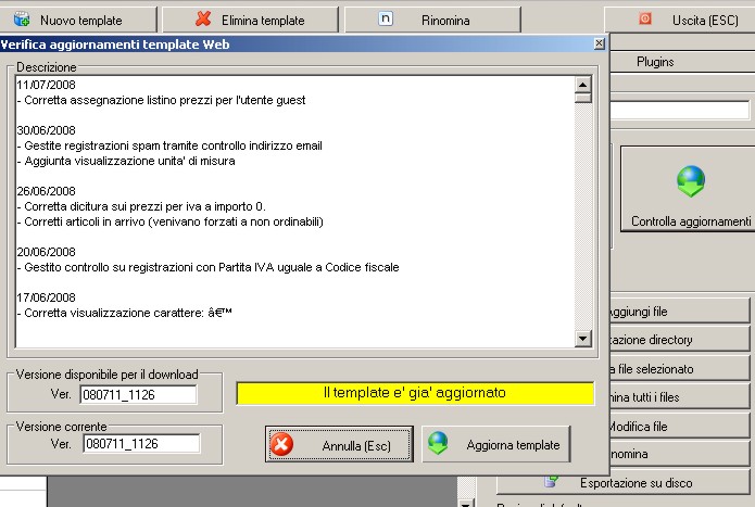 Il template è aggiornato quando chiedo la verifica... mi dice !Il template è già aggiornato". ...