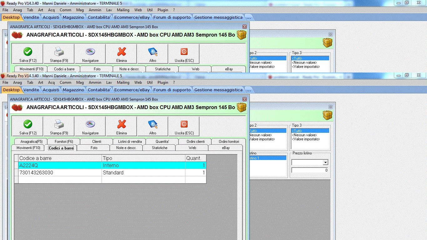 Puo' farci un esempio di un link ad una scheda articolo dove si aspetta di vedere la scheda tecnica? Servirebbe anche uno screenshot dell'anagrafica corrispondente su Ready Pro dove si veda la marca/codice produttore (oppure il codice a barre associato, se inserito)