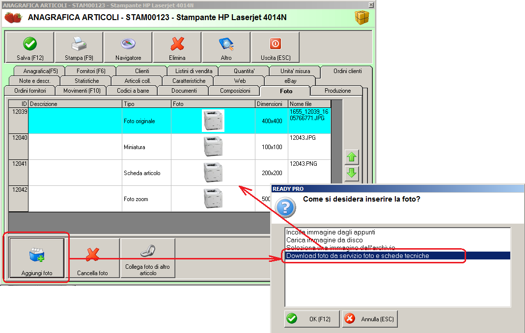 Si, esistono vari automatismi che ti aiutano ad aggiungere le foto prelevate da Icecat. Come questo sul singolo articolo