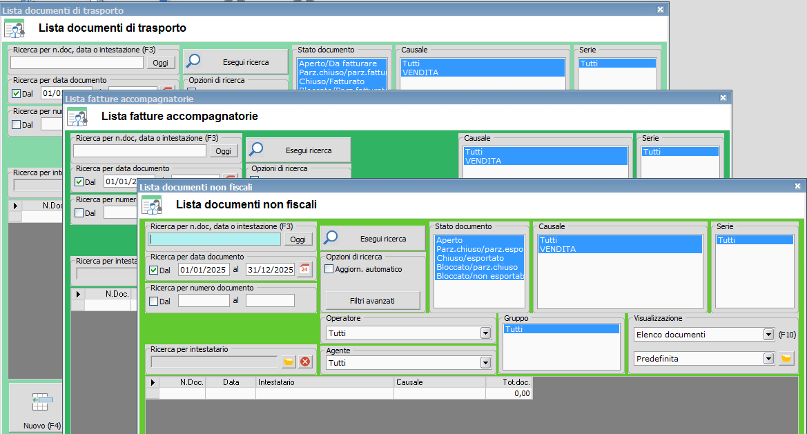 Per chi utilzza le finestre con sfondo colorato, e' stato modificato leggermente il colore di sfondo per DDT, fatture accompagnatorie e documenti non fiscali (che prima erano identici)