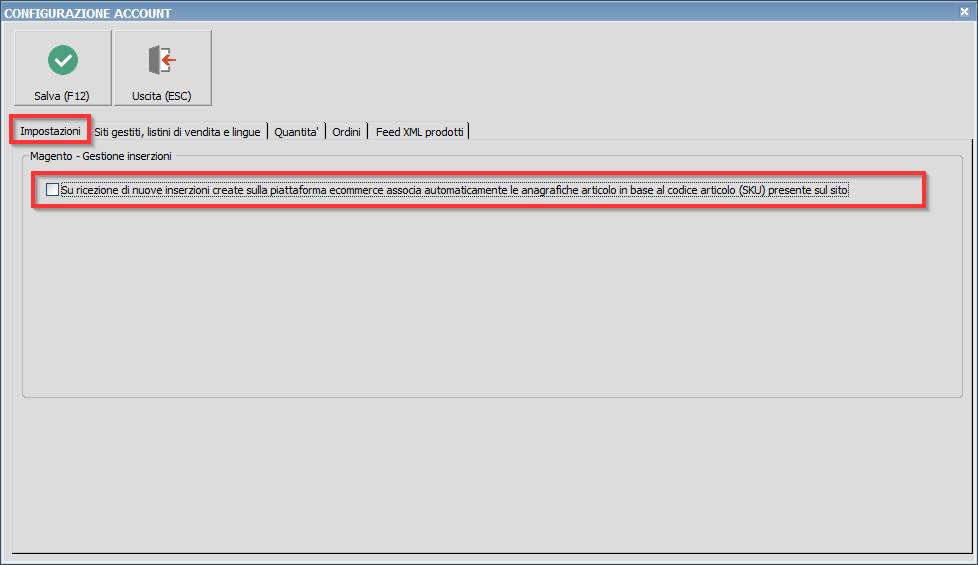 Plugin: Magento (API) - Opzione che consente di configurare il match automatico, tramite SKU, delle nuove inserzioni scaricate dal sito ecommerce