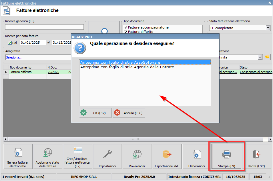 Procedura: Fatturazione elettronica - Funzionalita' di stampa massiva per le fatture attive (fino ad un massimo di 100 documenti in un'unica stampa)