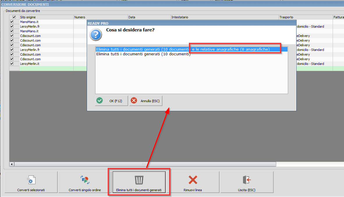 Procedura : Ordini Web / Ordini eBay - Su conversione massiva di ordini web ed ordini eBay, quando si ha necessita' di eliminare i documenti generati, e' anche possibile eliminare le relative anagrafiche clienti (se erano state create/generate contestualmente ai documenti)