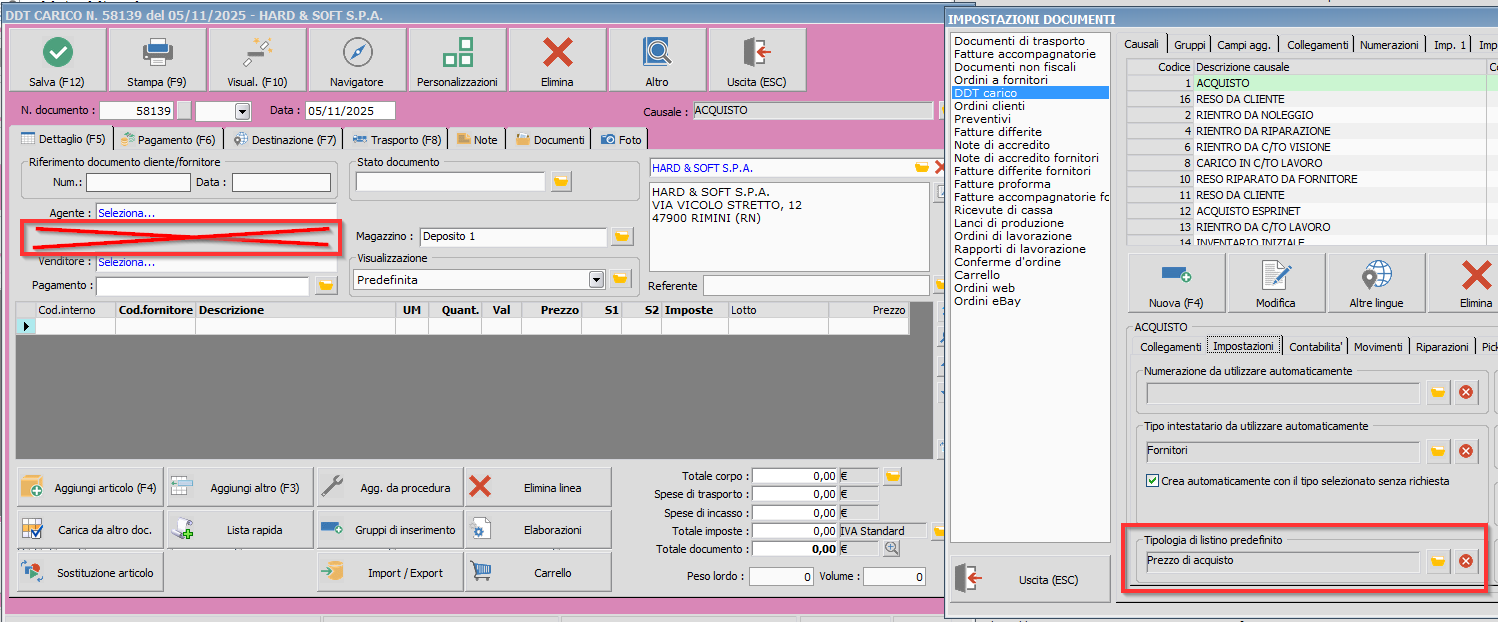 Procedura: Documenti di magazzino - Su documenti di "acquisto" (ovvero che utilizzano come riferimento il listini dei fornitori e non i listini di vendita) il campo "Listino di vendita" e' stato nascosto, per evitare interpretazioni errate