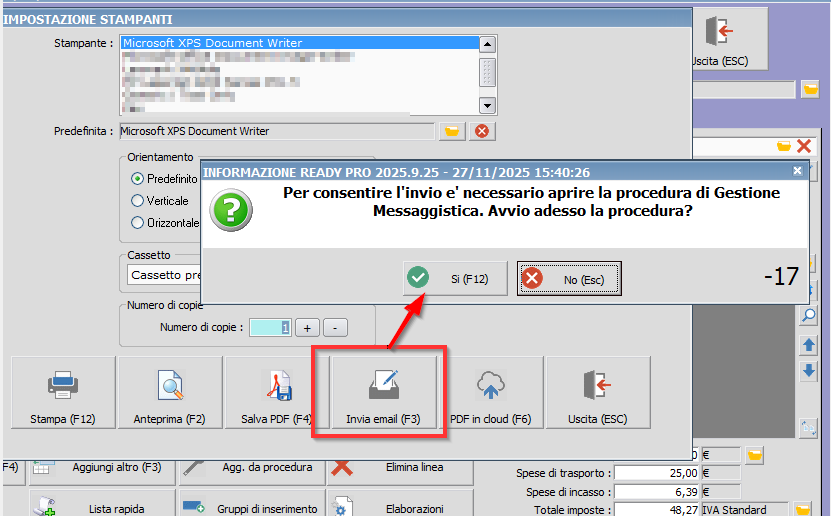 Procedura: Gestione messaggistica Se nella sessione di lavoro viene inviata una email o un messaggio SMS, e la procedura di gestione messaggistica e' chiusa (e quindi l'invio non potrebbe avvenire immediatamente) viene visualizzato un messaggio che propone di avviare la procedura di gestisone messaggistica Nel caso di email inviate in modo automatizzato da script o procedure automatiche l'avvio avviene invece automaticamente, senza visualizzare nessun tipo di requester
