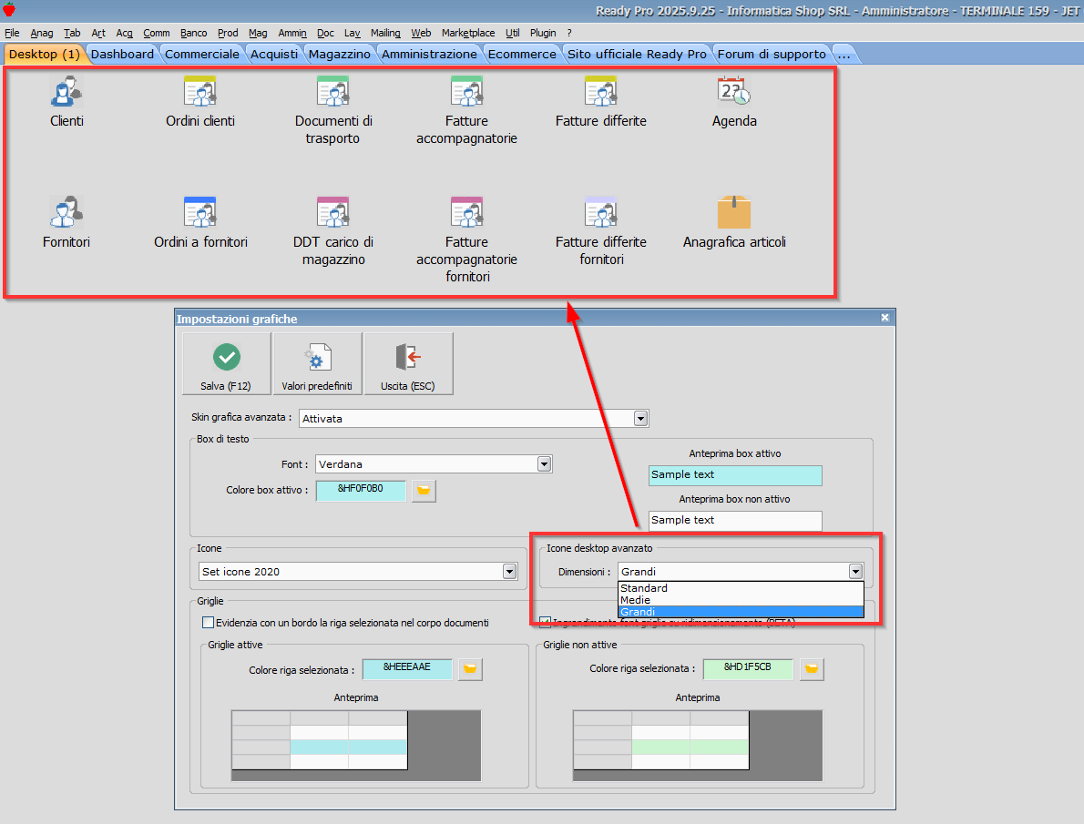 Procedura: Desktop avanzato - Possibilita' di visualizzare le icone del desktop avanzato in una versione ingrandita (attivabile tramite una specifica opzione da FILE / IMPOSTAZIONI GRAFICHE)