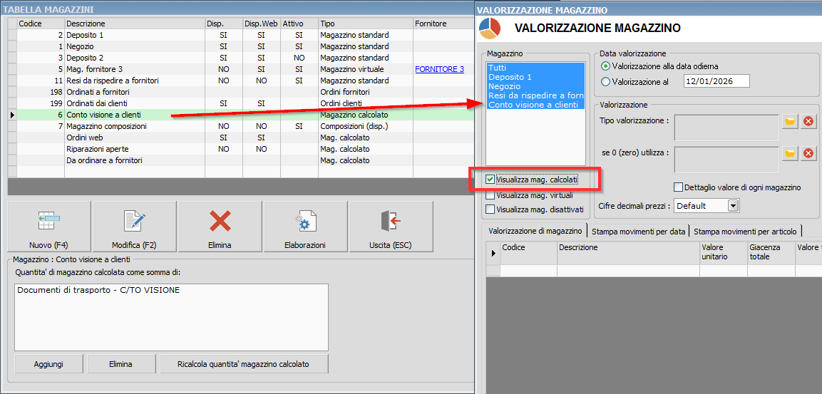 Procedura : Valorizzazione di magazzino Possibilità di valorizzare anche i magazzini calcolati